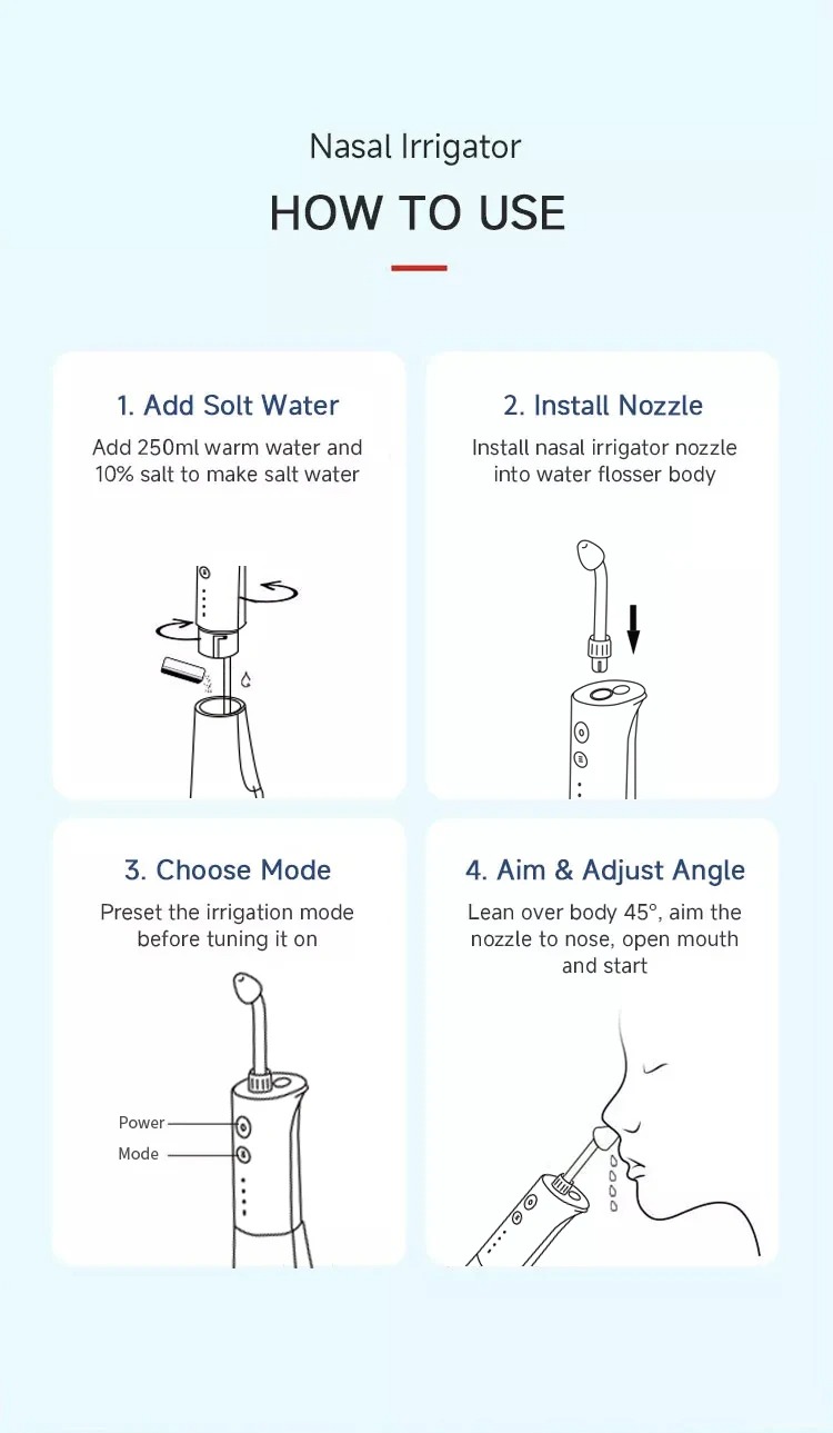 Eine elektrische Nasendusche ist ein modernes und praktisches Gerät, das mithilfe elektronischer Technologie eine wirksame Nasendusche ermöglicht.