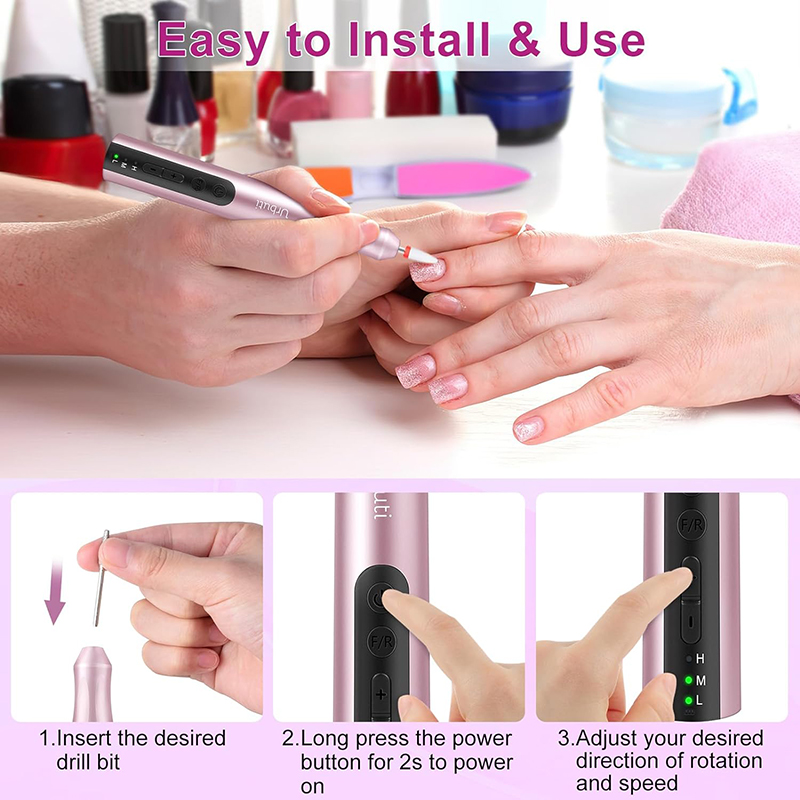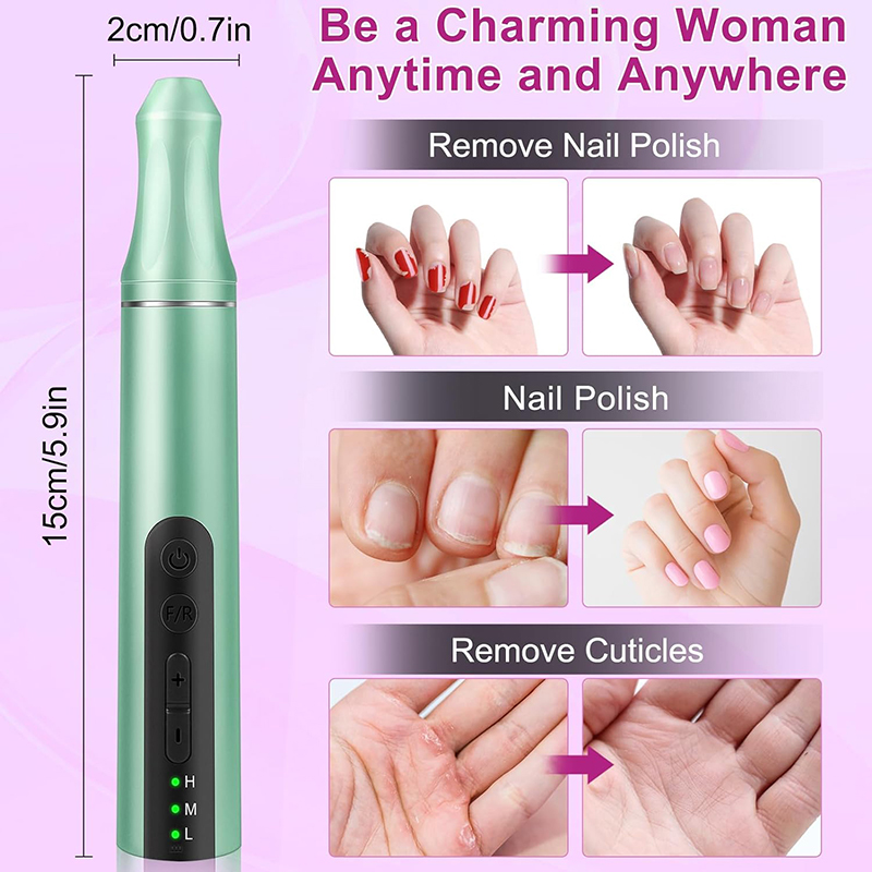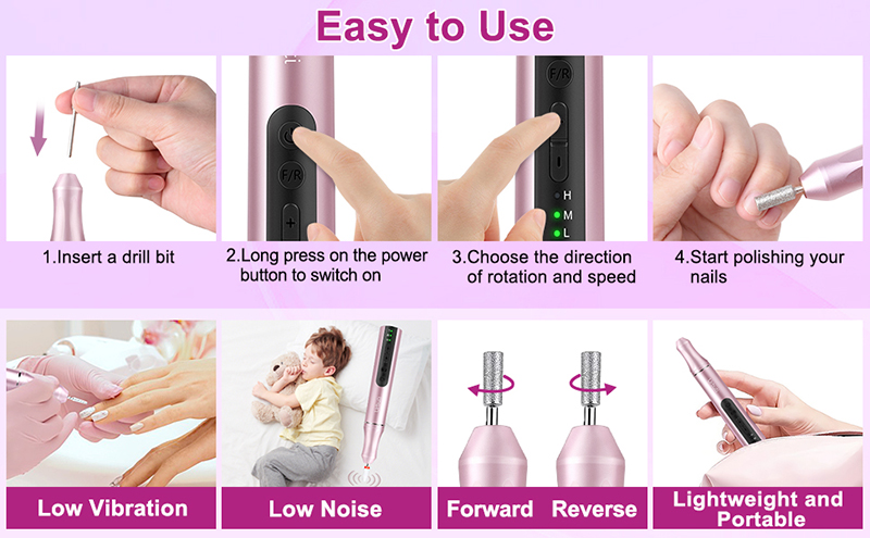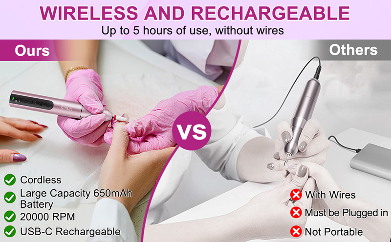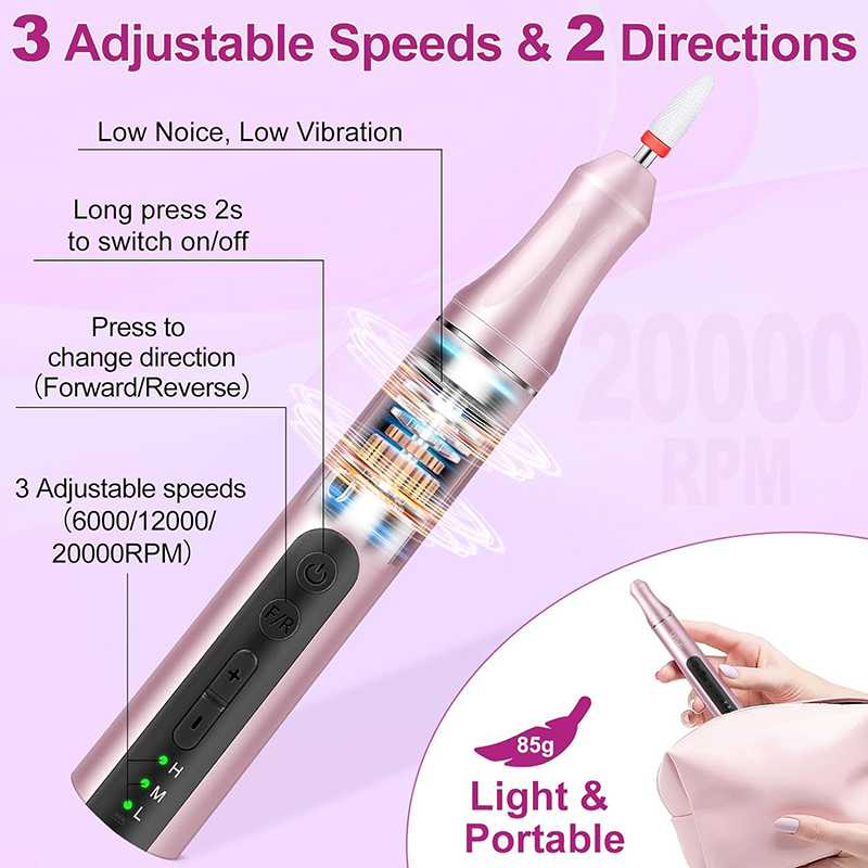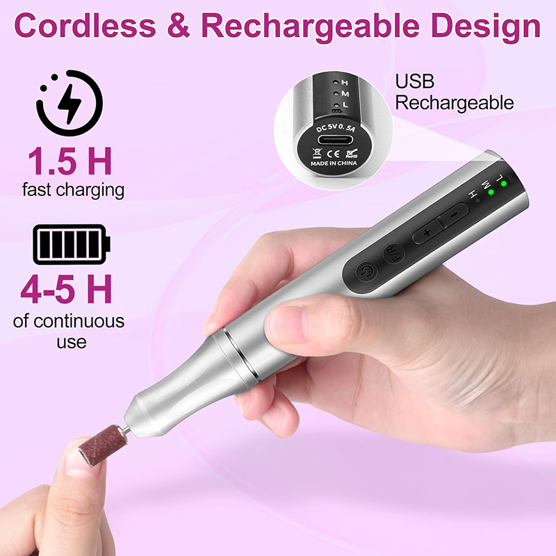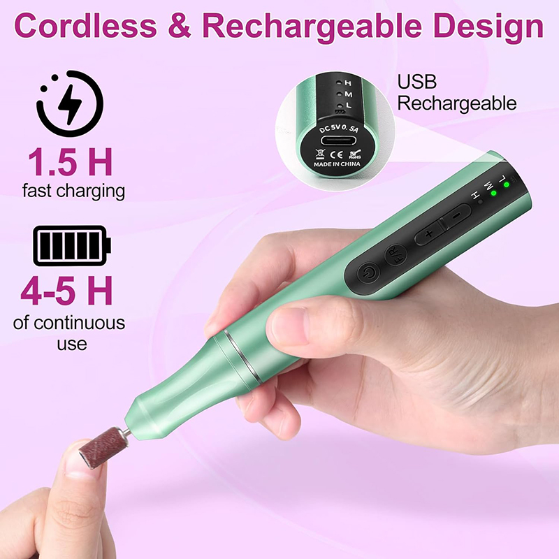 Nagelbohrer für Acrylnägel sind leicht (85 g) und passen in Ihre Handtasche oder Kleidertasche. Außerdem wird es mit einem USB-Ladekabel geliefert, das zum Aufladen einfach an jedes USB-Gerät angeschlossen werden kann, sodass Sie Ihre Nagelpflege jederzeit und überall genießen können.