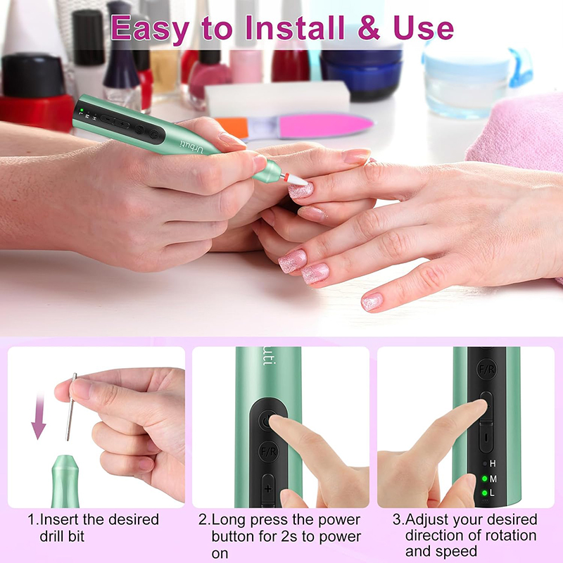 Das Akku-Nagelbohrer-Set bietet viele Schleifbänder und verschiedene Bohrer, um für verschiedene Nageltypen den richtigen auszuwählen. Um den Bohrer zu wechseln, ziehen Sie ihn einfach heraus, ersetzen Sie ihn durch den gewünschten Bohrer und drücken Sie die Ein-/Aus-Taste, um ihn zu verwenden. Dies macht es zu einem idealen Geschenk für Ihre Freundinnen. Wenn Sie Fragen zu diesem Produkt haben, können Sie sich gerne an uns wenden.