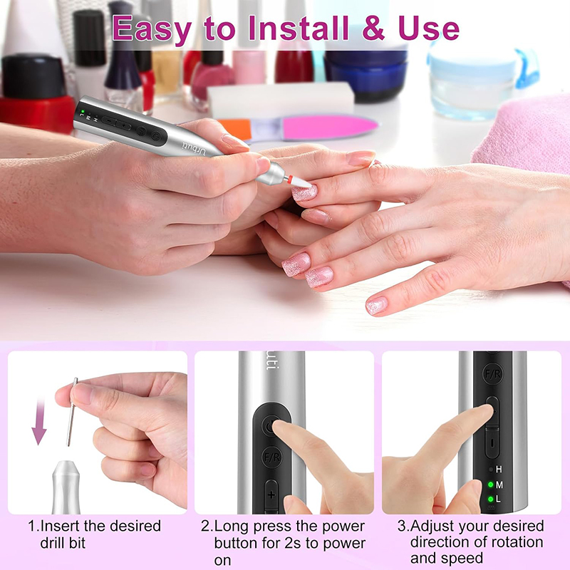 Dieser elektrische Nagelbohrer verfügt über ein hochmodernes Aluminiumgehäuse mit Antivibrationsdesign, das Lärm und Hitze beim Nagelschleifen effektiv reduziert und dafür sorgt, dass Sie beim Polieren Ihrer Nägel niemanden stören. Die ergonomische Stiftform sorgt für einen bequemen, rutschfesten Griff und ermöglicht Ihnen das mühelose Entfernen von Gelnägeln.