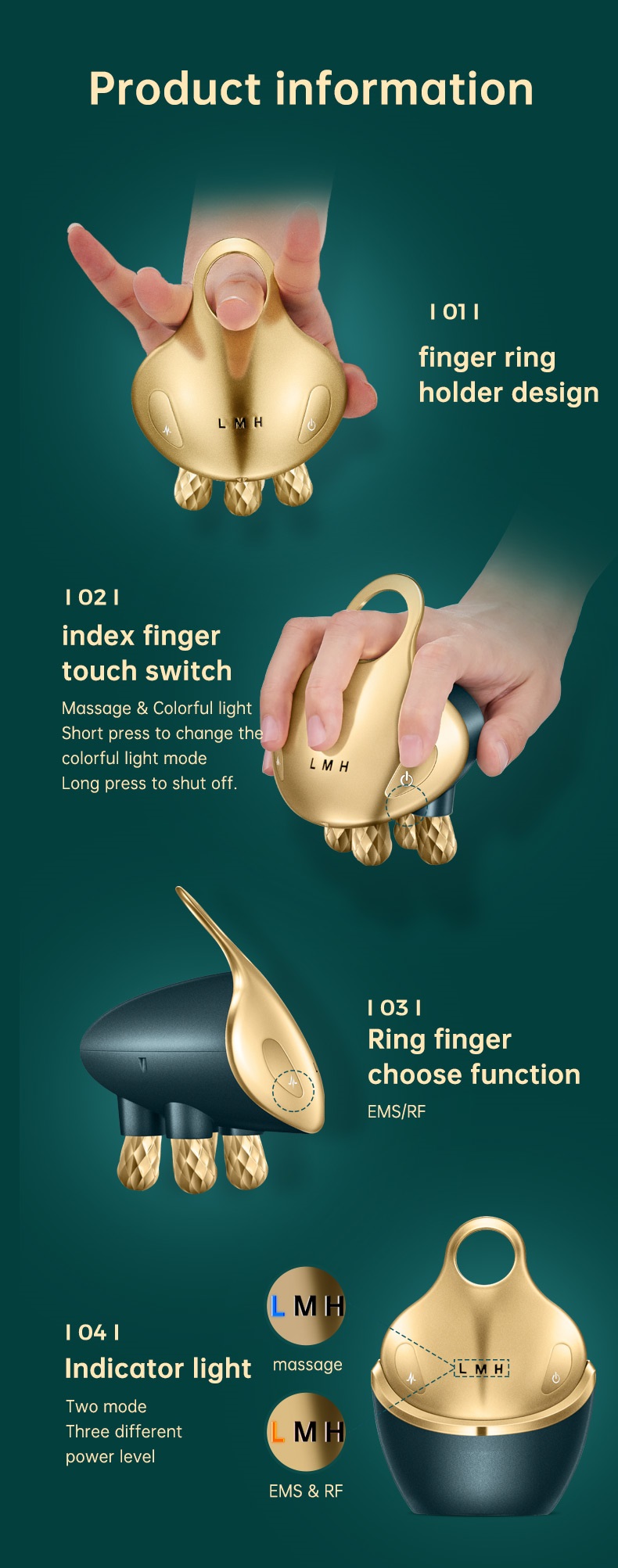 2. Massage + EMS + RF multifunktional, 3 Geschwindigkeiten und Intensität einstellbar