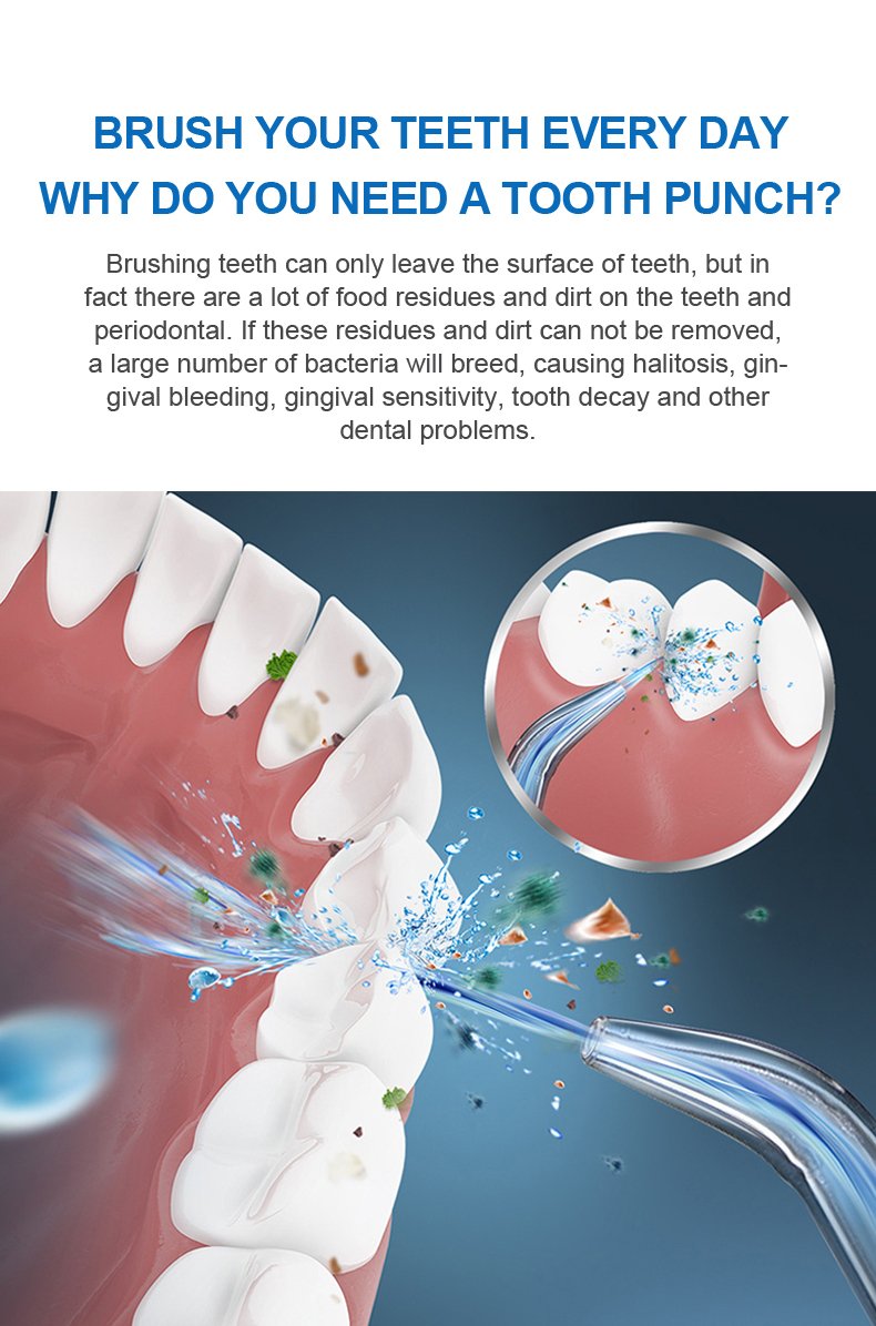Dieser Wasserzahnstocher gibt 1400-1800 Mal pro Minute hohe Wasserdruckimpulse ab und entfernt so effektiv 99,9 % des Zahnbelags für eine gründliche Zahnreinigung. Dieser Wasserzahnstocher massiert das Zahnfleisch, fördert die Durchblutung und behebt orale Probleme wie Mundgeruch, kieferorthopädische Zähne