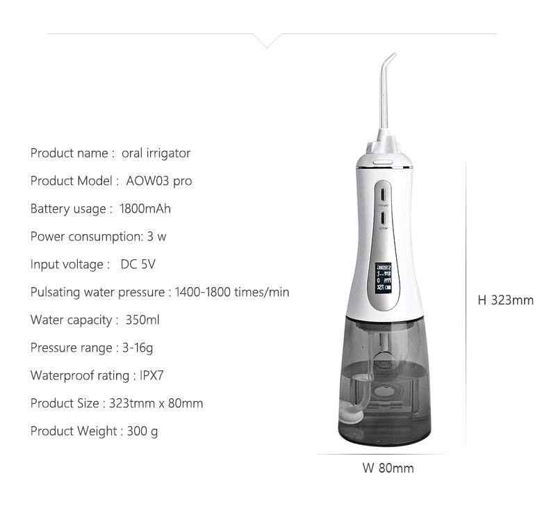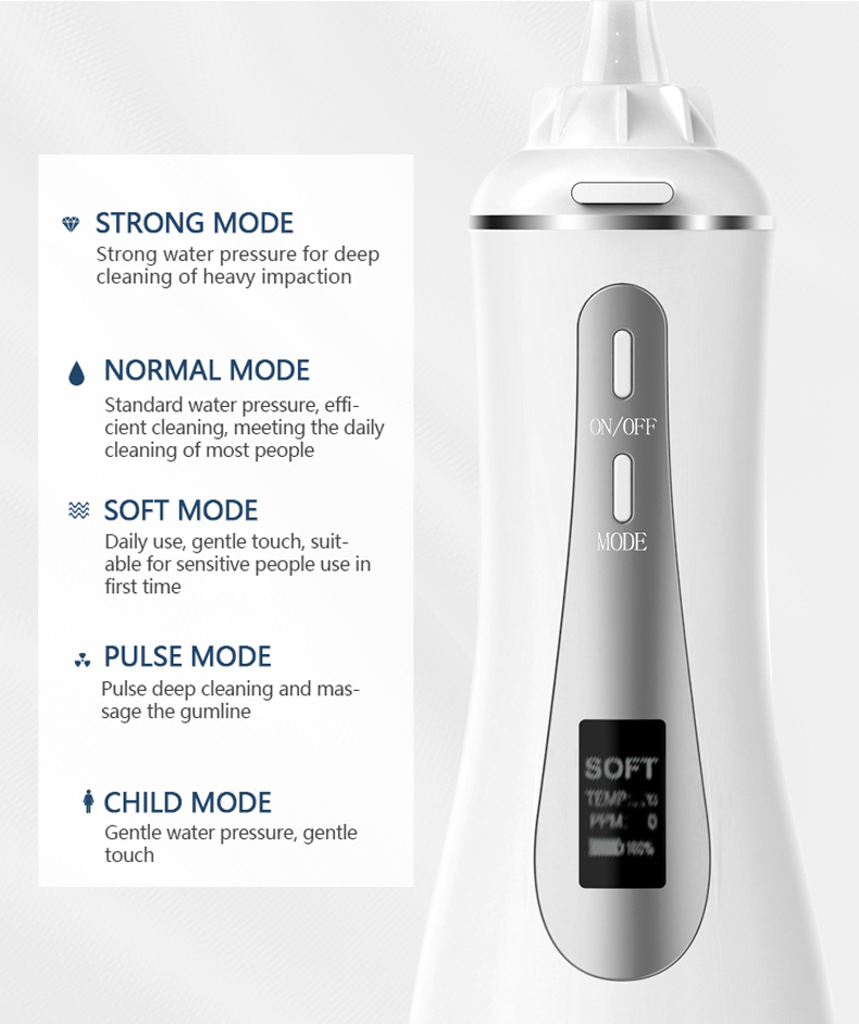 Unser kabelloser Wasserzahnstocher ist äußerst wasserdicht und ermöglicht so eine einfache Reinigung und sichere Verwendung beim Duschen.