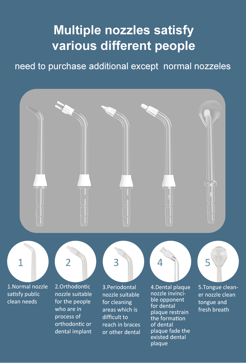 Unser Zahnseidegerät wurde von einem amerikanischen Dentalteam professionell bewertet und bietet fünf praktische Modi, die den unterschiedlichen Bedürfnissen von 99 % der verschiedenen Altersgruppen gerecht werden und gleichzeitig optimale Leistung und Lebensdauer gewährleisten. Sein ergonomischer Griff und 6 austauschbare Düsen sorgen für ein komfortables und vielseitiges Erlebnis. Es ist ein aufmerksames Geschenk für Geburtstage, Weihnachten, Thanksgiving, Valentinstag, Vatertag, Muttertag oder zur Pflege der Mundgesundheit Ihrer Lieben