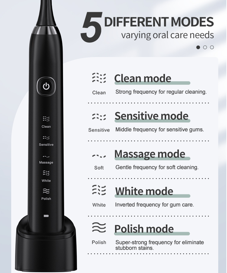 - 5 HOCHLEISTUNGSFÄHIGE PUTZMODI - Reinigen (sanft), Weiß (stark), Polieren (starke Inversionsfrequenz), Milder (sanfte Inversionsfrequenz) und Sensitiv (weich) für den unterschiedlichen Zustand von Zähnen und Zahnfleisch. Sie können also je nach Ihren Vorlieben und den Empfehlungen Ihres Zahnarztes unterschiedliche Modi wählen.