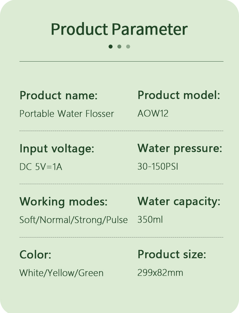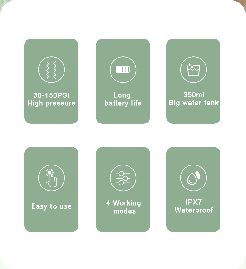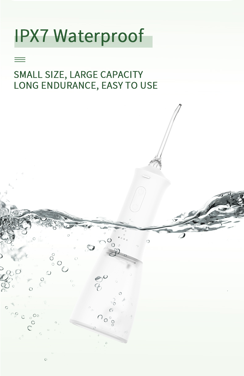 Unser kabelloser Wasserzahnstocher ist äußerst wasserdicht und ermöglicht so eine einfache Reinigung und sichere Verwendung beim Duschen.