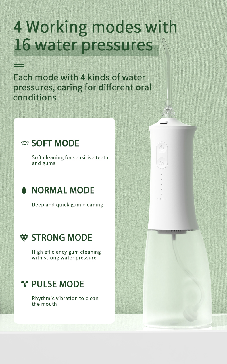 Dieser Wasserzahnstocher gibt 1400-1800 Mal pro Minute hohe Wasserdruckimpulse ab und entfernt so effektiv 99,9 % des Zahnbelags für eine gründliche Zahnreinigung. Dieser Wasserzahnstocher massiert das Zahnfleisch, fördert die Durchblutung und behebt orale Probleme wie Mundgeruch, kieferorthopädische Zähne