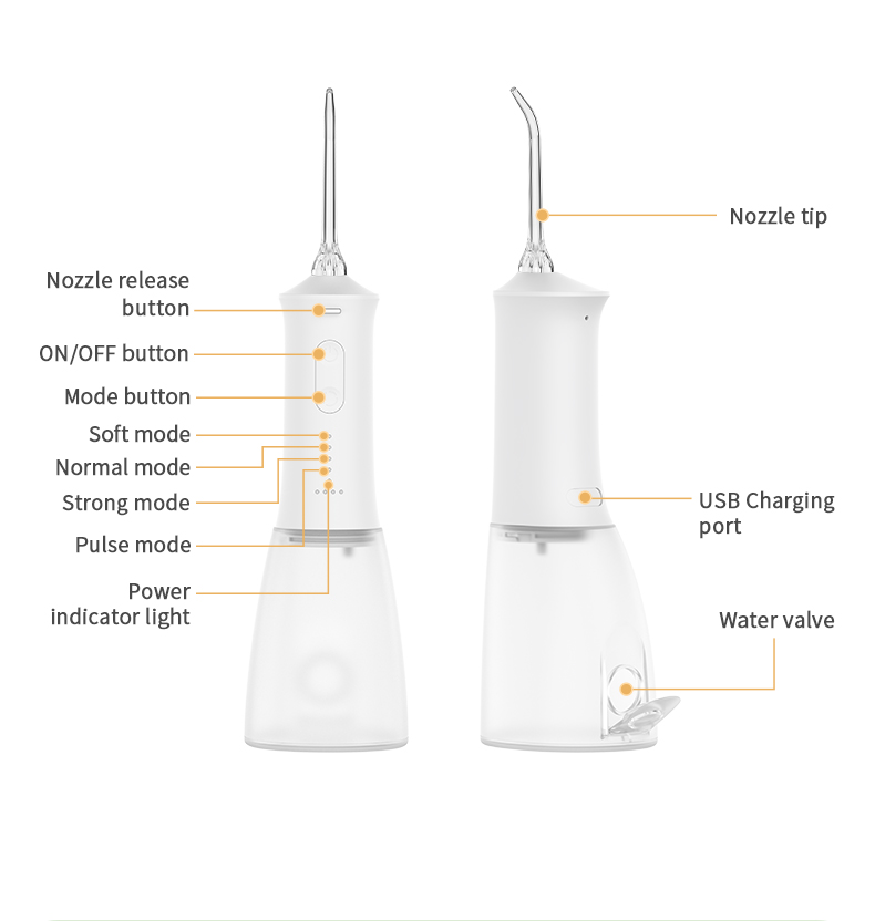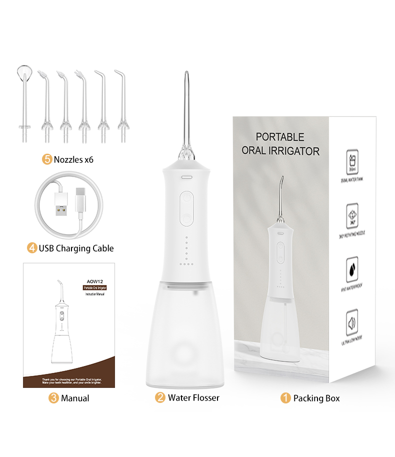 Produktname: USB-aufgeladener tragbarer Munddusche, wiederaufladbarer Wasserstrahl-Flosser, wasserdicht, IPX7, Dental-Wasser-Flosser