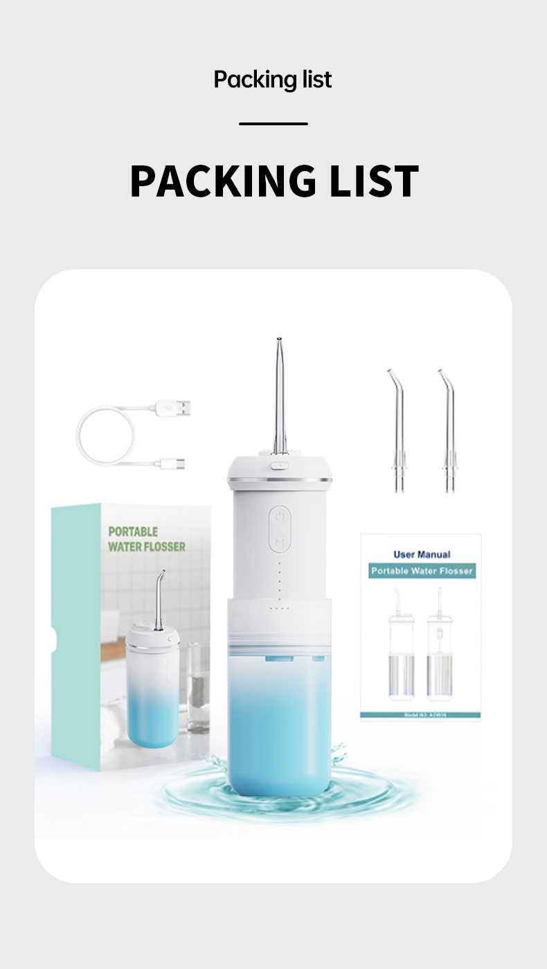 IPX7-Wasserdichtigkeit und 2 Jahre Haltbarkeit: Diese kabellose Wasserzahnseide ist mit IPX7-Wasserdichtigkeit auf Langlebigkeit ausgelegt und ermöglicht eine einfache Reinigung und sichere Verwendung unter der Dusche. Der verbesserte Motor sorgt für eine effektivere Reinigung und eine längere Haltbarkeit von bis zu 2 Jahren - 30 Tage verlängerte Akkulaufzeit für unterwegs: Die tragbare Wasserzahnseide verfügt über einen leistungsstarken, umweltfreundlichen Akku, der doppelt so lange hält wie andere Modelle. Mit nur 3 Stunden Ladezeit können Sie bis zu 30 Tage lang damit arbeiten. Dank seines kompakten und leichten Designs eignet es sich perfekt für den Einsatz zu Hause oder unterwegs. Zum einfachen Aufladen wird es mit einem USB-Kabel (Adapter nicht im Lieferumfang enthalten) geliefert. Hinweis: Nur 5V/1A/2A/3A-Adapter sind geeignet. Bitte verwenden Sie zum Aufladen den richtigen Adapter.