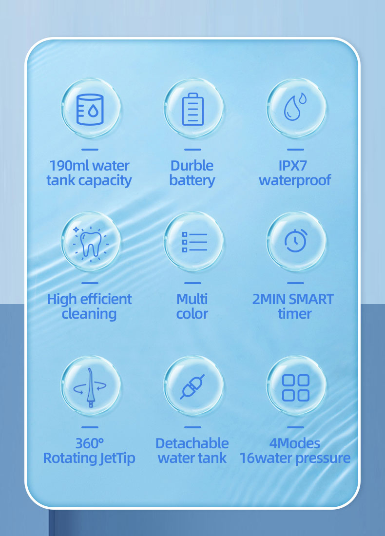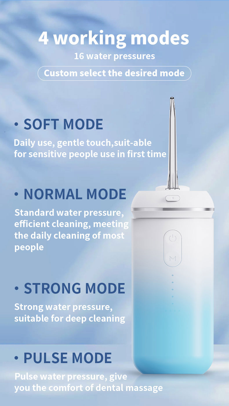 - Upgrade auf 4 Modi mit DIY-Auswahl: Dieser kabellose Wasser-Zahnseide-Pick wurde auf den DIY-Modus aktualisiert, sodass Sie Ihren eigenen Reinigungsmodus basierend auf Ihrem Zahnzustand anpassen können, um Ihr Zahnfleisch zu schützen. Er ist besser für Menschen mit Zahnfleisch geeignet. Er verfügt auch über eine Speicherfunktion für die nächste Verwendung mit einem Klick. Dieser Wasser-Zahnseide-Pick kümmert sich auf wissenschaftlichere Weise besser um Ihre Karies und ist außerdem sehr einfach zu verwenden.